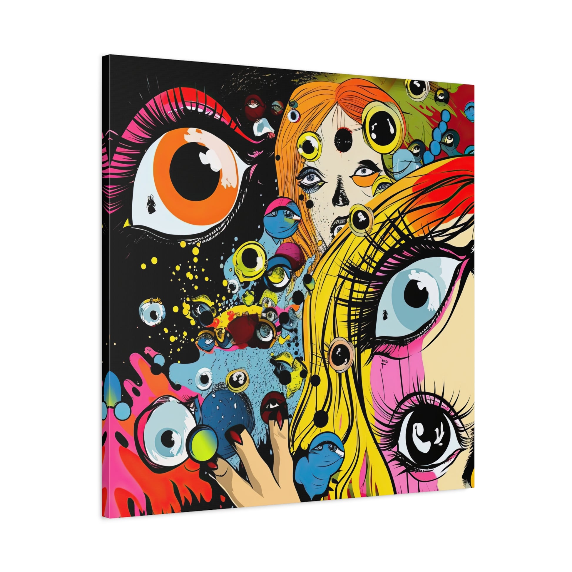 "Through a Thousand Eyes" invites you to dive into a chaotic, vibrant world where perception is distorted and reality blurs. Eyes everywhere, expanding and multiplying, reflect the overwhelming nature of modern life, where we are constantly being watched or scrutinized. A surreal representation of self-awareness and external judgment, captured in bold colors and sharp contrasts.
