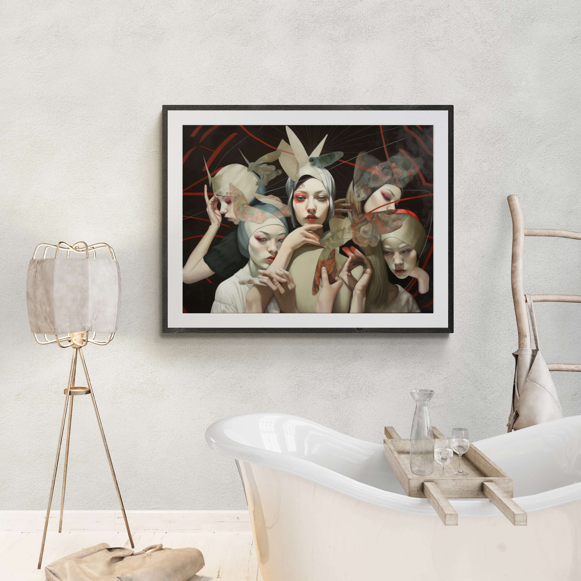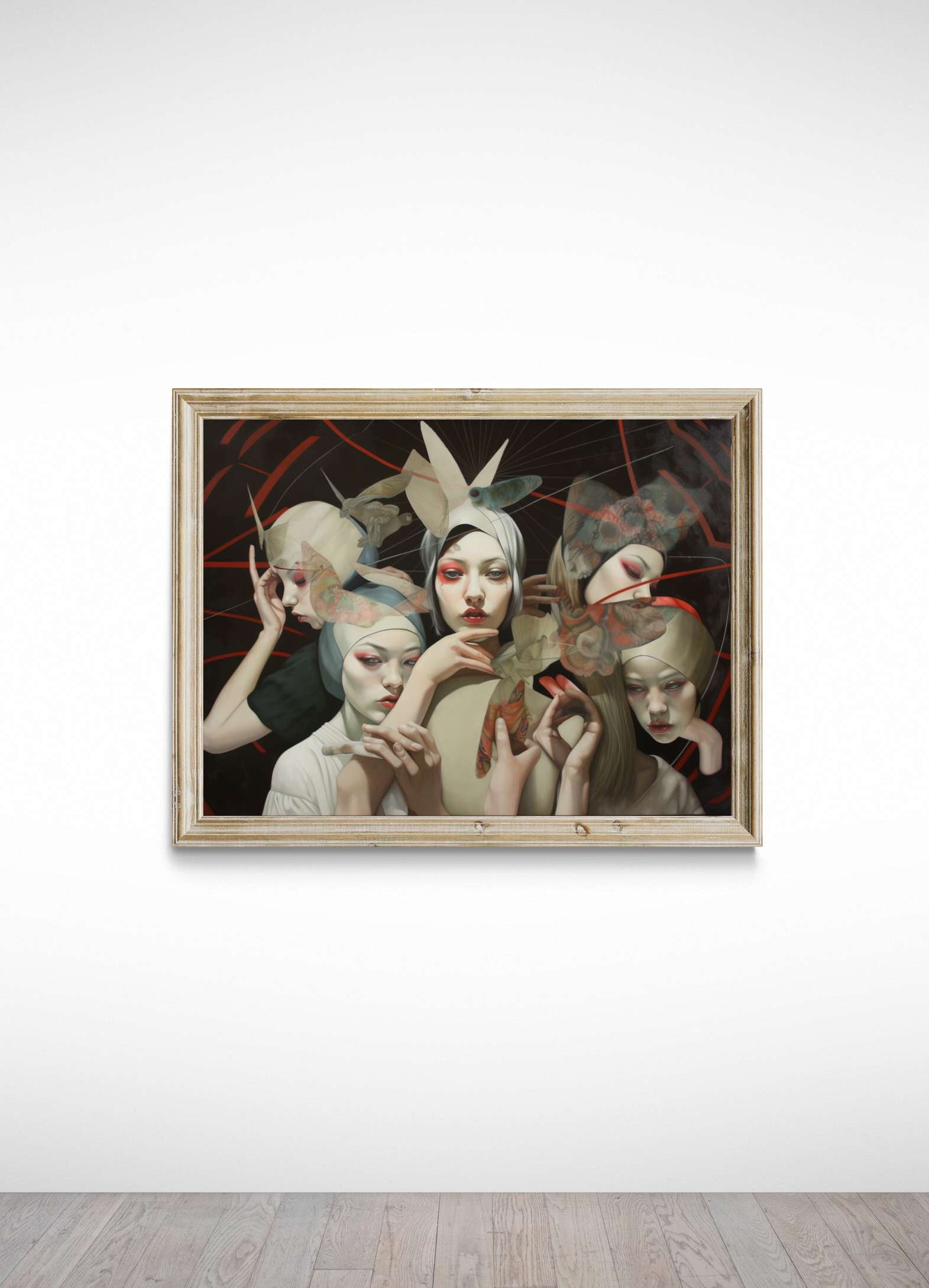 "The Mask of Beauty" invites you into a surreal moment where delicate masks obscure identity, and the fleeting nature of perfection takes center stage. A quiet yet powerful reflection on self-image and the roles we play, captured in a dreamlike dance between fragility and strength.