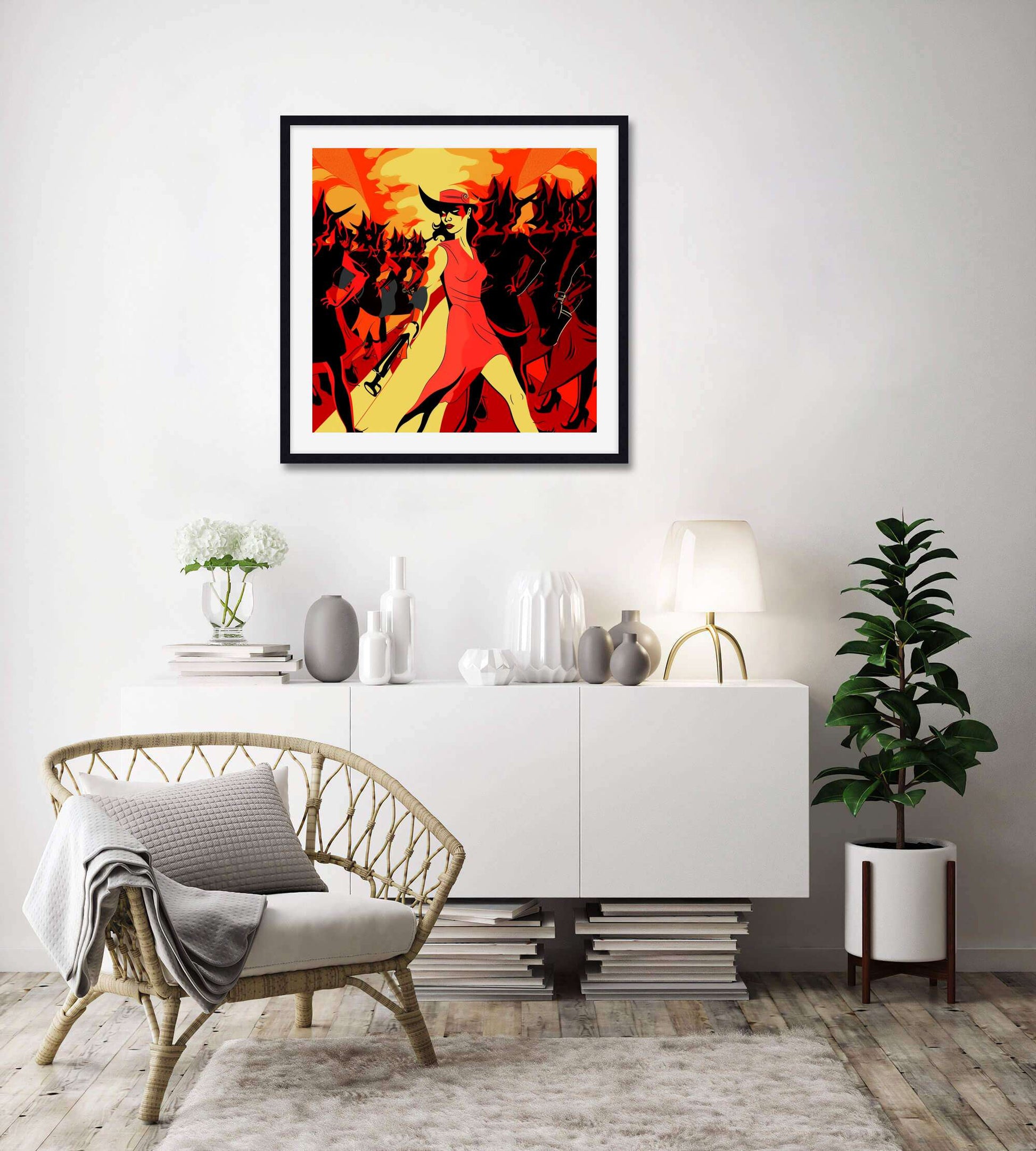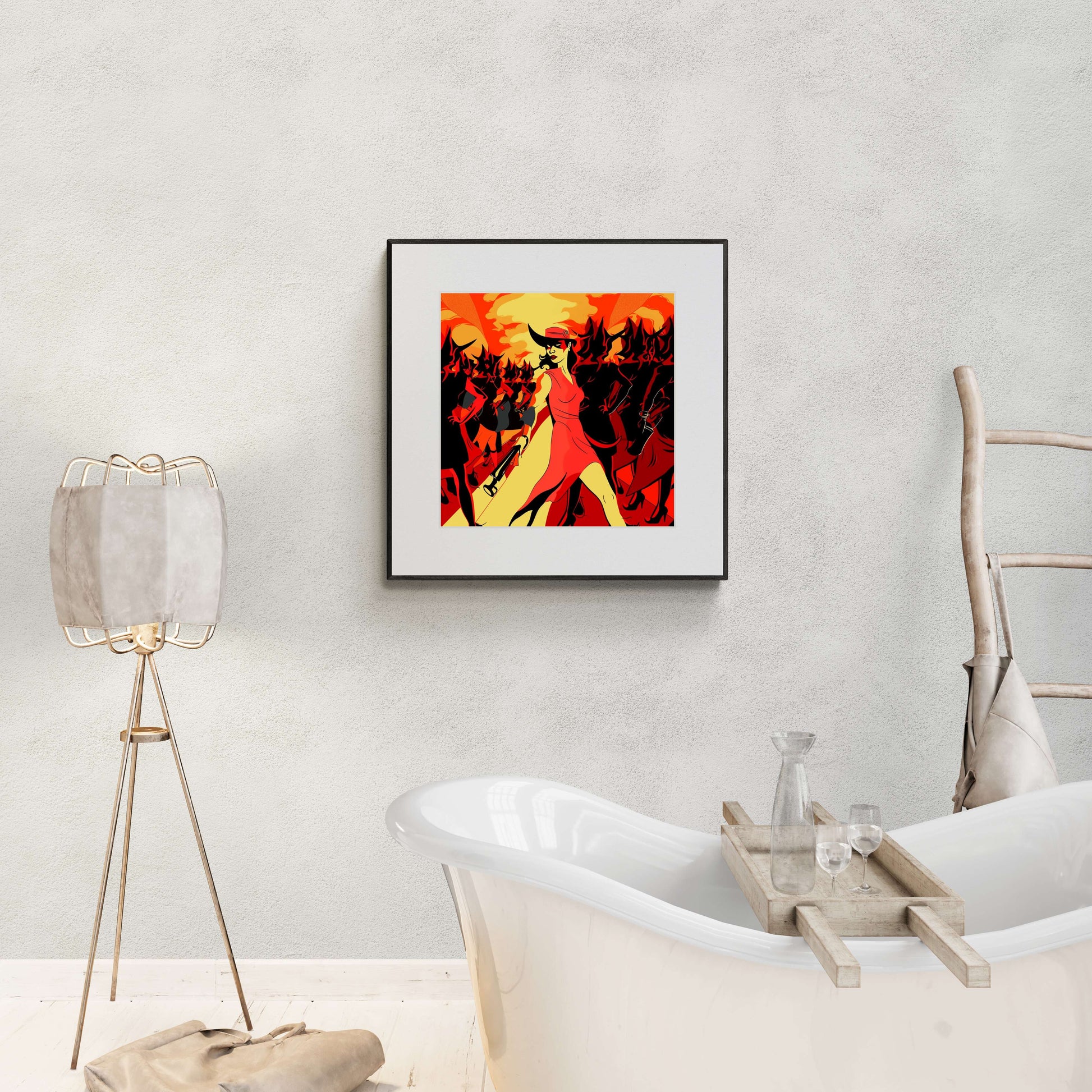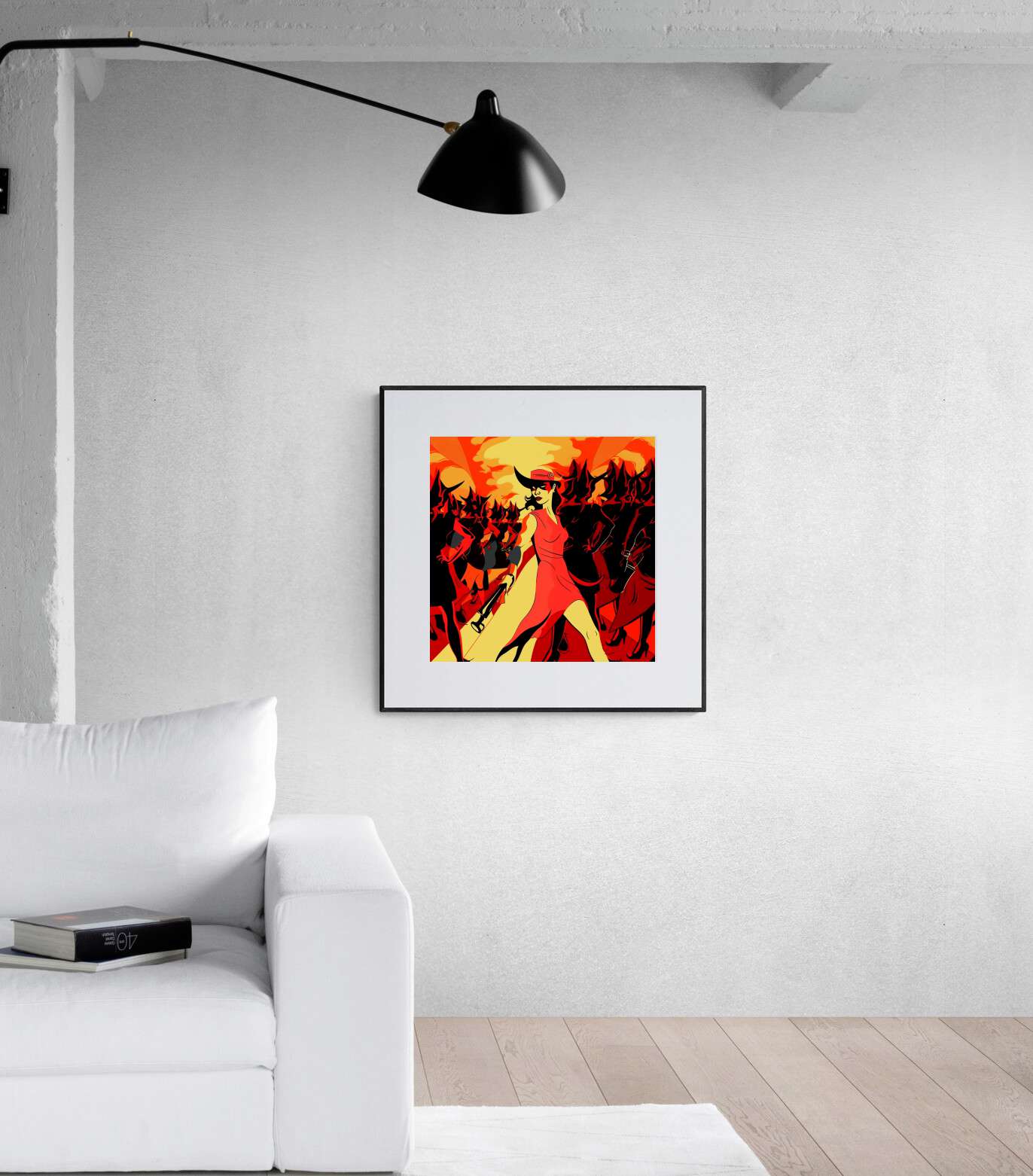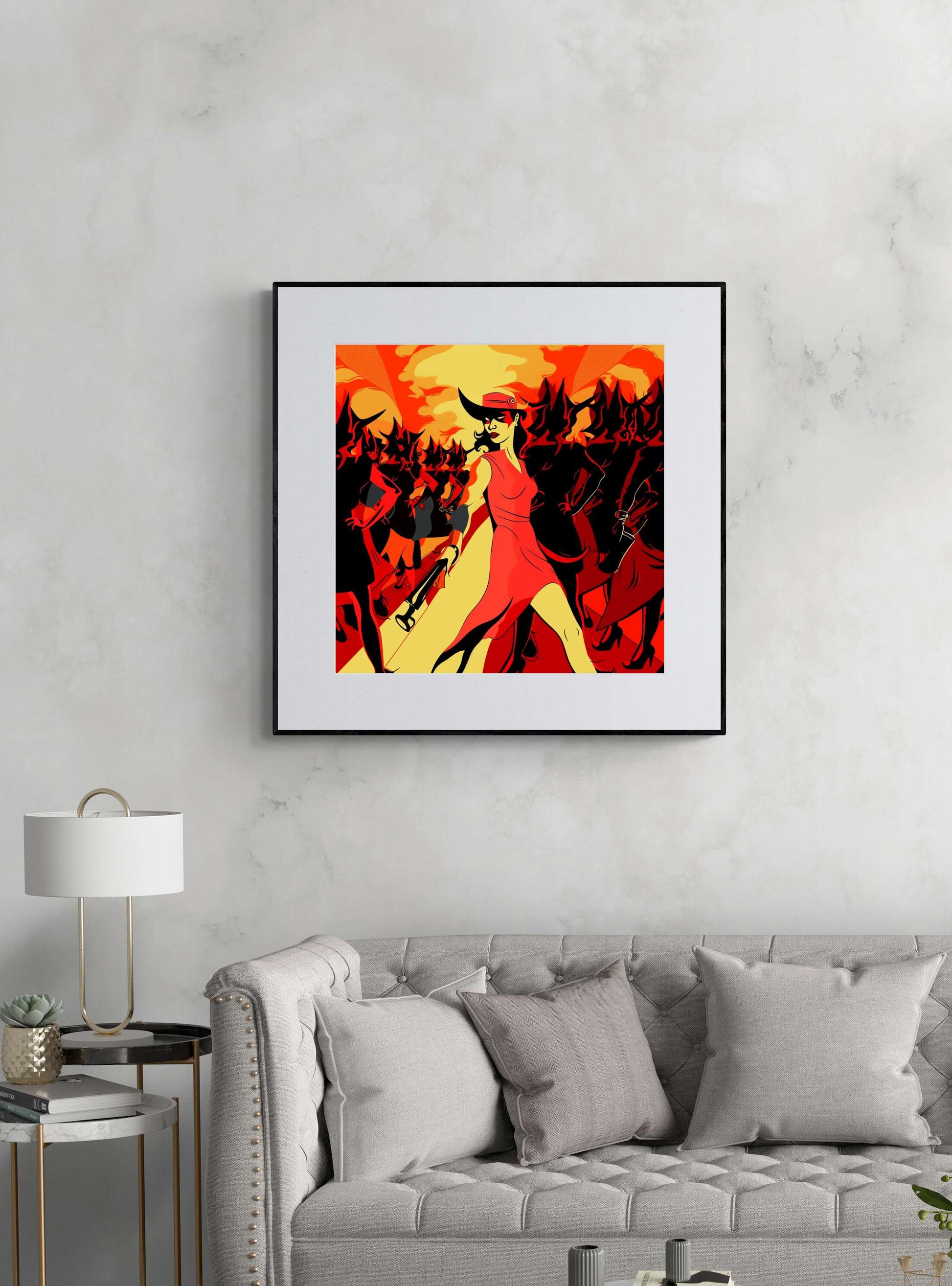 "March of the Dissidents" invites you into a surreal world where defiance takes center stage. A lone woman strides boldly through a sea of shadows, embodying strength and independence in a world dominated by conformity. The contrast of fiery reds and deep blacks evokes both tension and rebellion, while the woman’s confident walk symbolizes the courage to stand out amidst the noise and chaos of societal expectations.